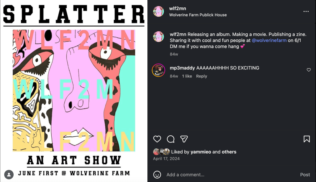 Me: I felt the context affected the imagery for me. Like when she says “Is she famous? Somebody famous?” I kept picturing the redheaded girl from Stranger Things. And in “Pussy Palace,” the lead-in sounded like the Stranger Things theme.